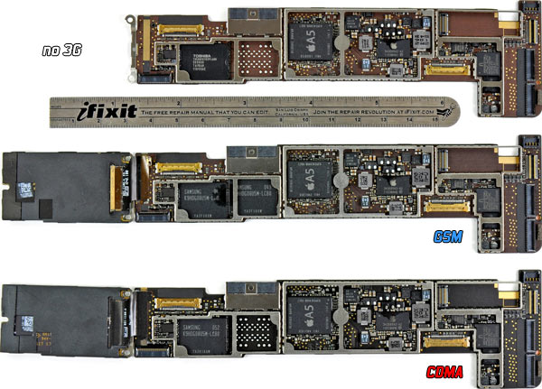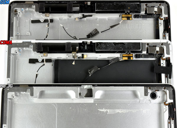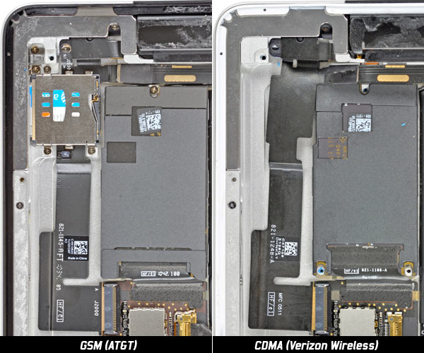 Se non basta averlo visto esternamente, ora gli amici di iFixit hanno voluto chiudere il cerchio smontando anche le altre 2 versioni 3G (WWAN), che hanno a disposizione in USA: quella GSM per il carrier AT&T (che è la stessa disponibile anche nel resto del mondo) e quella CDMA per Verizon Wireless.