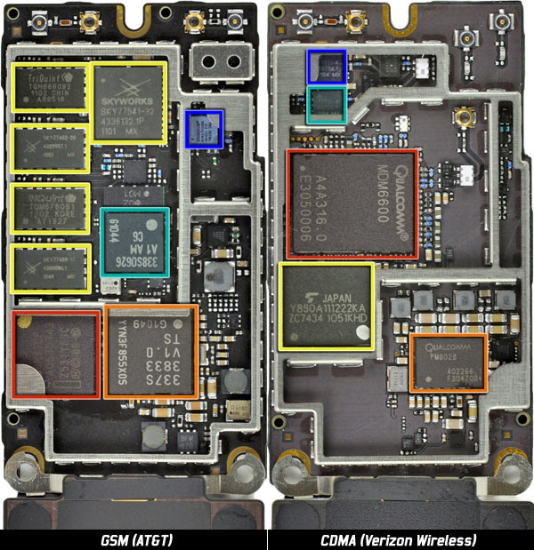Ecco la differenza tra le intere schede logiche, con il “prolungamento” solo per i modelli 3G. Eppure il chip Qualcomm in tecnologia Gobi sarebbe in grado di sfruttare le reti cellulari sia CDMA che GSM.