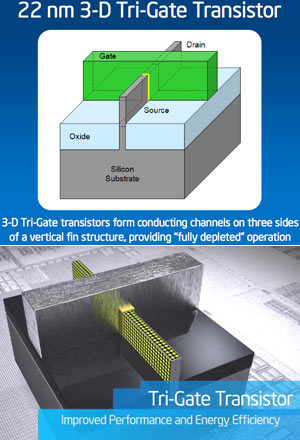 I nuovi transistor non saranno solo ridotti alla tecnologia di miniaturizzazione da 22 miliardesimi di metro, ma introdurranno anche il Tri-Gate. Prima demo mondiale con i modelli “Ivy Bridge”.