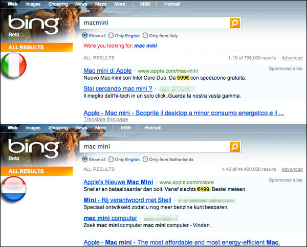 Infine è stato il turno di Bing di Microsoft e pure in questo caso l'Olanda ci regala la quasi certezza che il ribasso di 100 euro è un'anticipazione di quello che dovrebbe accadere a breve per il Mac mini "più veloce" (attualmente è dotato di un processore Core 2 Duo @ 2 GHz o in opzione 2,26 GHz).