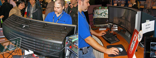 Il display panoramico ed "avvolgente" da 42,8 pollici lo avevamo già visto al Macworld Expo di San Francisco (eccolo qui sotto) cinque mesi fa ma un anno prima Alienware proponeva qualcosa di molto simile al CES di Las Vegas (immagine a fondo articolo).