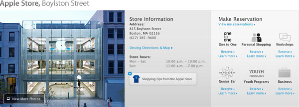 Grazie alla segnalazione del sempre attento Gary di ifoAppleStore apprendiamo che le prenotazioni per il Personal Shopping sono sparite dalla schermata iniziale sul sito di Apple, della maggior parte dei negozi se non tutti. In basso vedete come uno dei più importanti Apple Store la elencava tra la prenotazione delle lezioni personali One to One (a pagamento annuale) e quella dei seminari, ora è sparita.