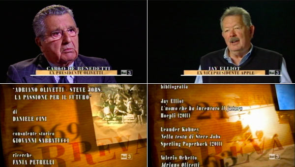 Aggiornamento del 23/06/2011: è arrivato il commento del critico televisivo Aldo Grasso sul Corriere della Sera e per lui il confronto tra i capi carismatici di Apple ed Olivetti è stata una buona idea. Non solo questo programma (servizio pubblico o no) non rispetta l’orario di programmazione, perché stupirsi in questo paese?