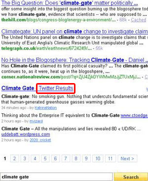 Il tempo reale su Google è apparso di recente e Yahoo! aggiunge le informazioni provenienti da Twitter, a fondo pagina.