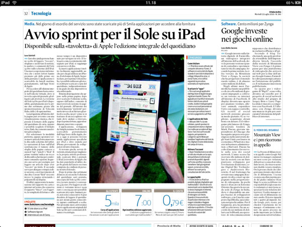 Mentre La Stampa è arrivata oggi sull’iPad, con il giornale della Confindustria siamo al secondo giorno.