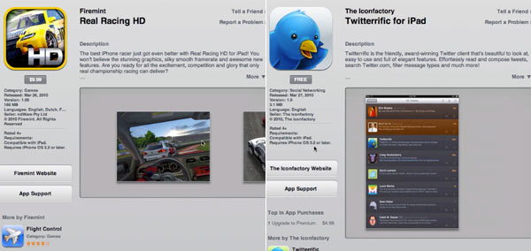 Sarà possibile far girare nell’iPad le applicazioni fatte per uno schermo molto più piccolo, come quello dell’iPhone/iPod touch, ma chi vorrà sfruttare appieno il nuovo dispositivo portatile sarà interessato ai software contrassegnati con le indicazioni “for iPad” o “HD”.