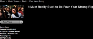 Passando ad iTunes Store USA, inizia con il videoclip gratis “I must really suck to be for year strongright now” di Four year strong, la lista dei file da scaricare a costo zero.