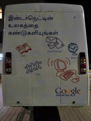 Prasad Ram, il responsabile della ricerca e sviluppo di Google India, ha dichiarato all'Hindu Business Line che il 19% di tutti i contenuti indiani di Intenet è in lingua tamil e quindi il tour dell'Internet Bus parte proprio da questa regione.
