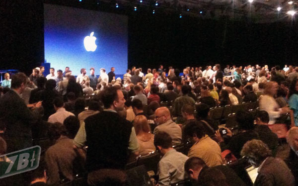 Nonostante le difficoltà create ad arte da Apple per gli operatori del settore (quelli veri), la nostra diretta parte qui mostrandovi come appare la sala gremita. Tra poco salirà sul palco Steve Jobs.