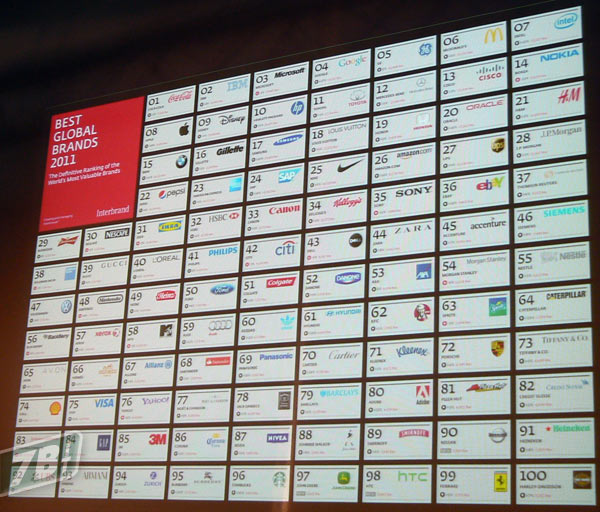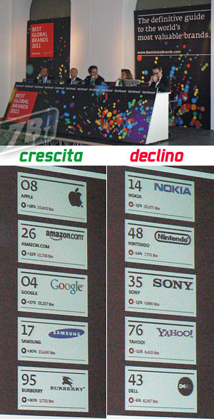 Questa mattina Interbrand ha presentato a Milano (come ad Amsterdam, Francoforte, Parigi, Londra New York City, Seul, Singapore e Tokio) la nuova Best Global Brands del 2011, la classifica dei migliori 100 marchi del pianeta (disponibile anche su iPad).