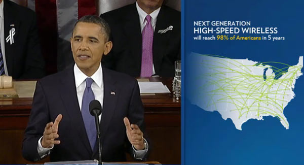Nel discorso del presidente USA si è citata l’espansione della connettività ad Internet in banda larga, per le reti wireless Obama ha promesso di portare entro 5 anni al 98% della popolazione il segnale, dedicato al traffico dati mobile.