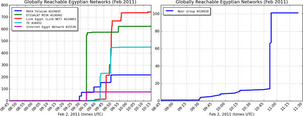 Lo confermano sia Al Jazeera che Renesys, i principali carrier assoggettati al volere di Hosni Mubarak hanno ripristinato il collegamento alla rete, che si era interrotto nella notte tra giovedì e venerdì scorsi.