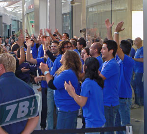 L’attesa prima dell’apertura del negozio Apple a Misterbianco