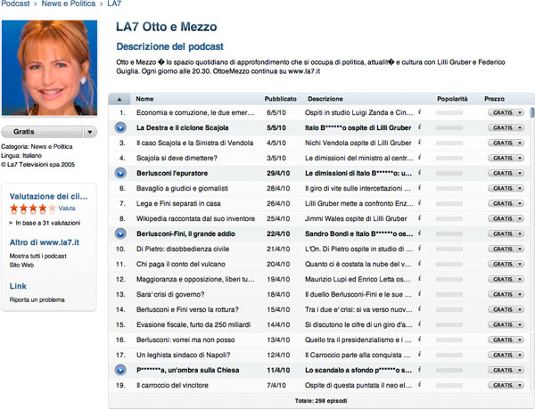 Il nuovo sito di Luca Sofri, Il Post, ha scoperto una curiosa situazione tra i podcast presenti su iTunes.