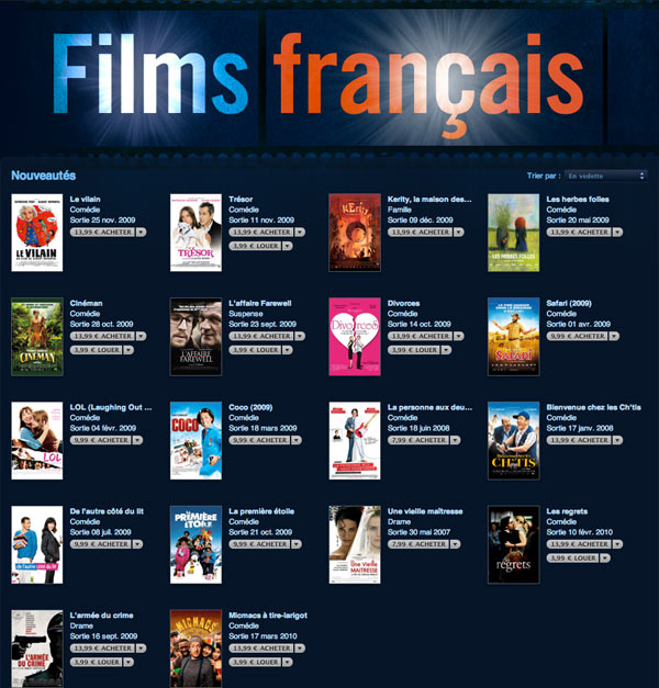 Apple ha aggiunto al catalogo di iTunes Store Francia i film.