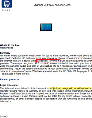 E’ stato scovato sul sito di HP qualche dettaglio in più sul tablet con il sistema operativo fatto per i normali PC.