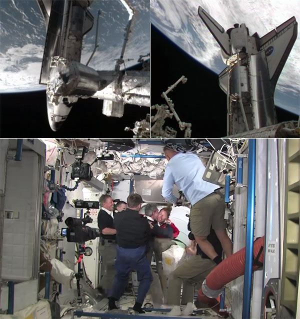 Proprio ieri pomeriggio lo Shuttle si è agganciato (come possiamo vedere dalle immagini sottostanti) all’ISS – International Space Station.
