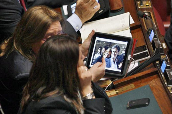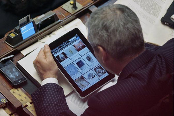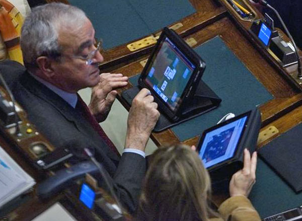 Altri politici che si annoiano tra una votazione o l’altra (oppure durante). Dilaga il tablet di Apple. Aggiornato.