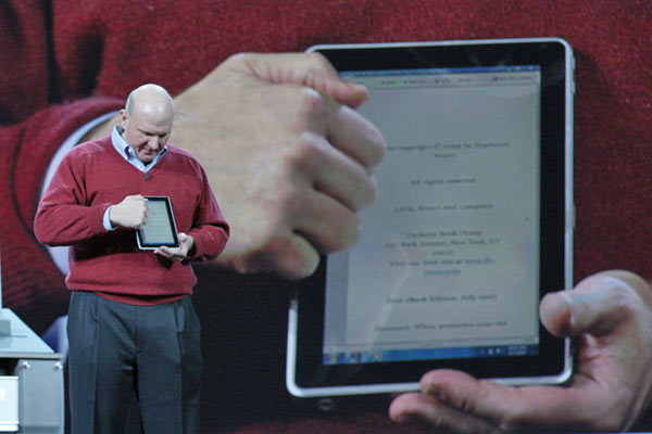 Microsoft ha mostrato in anteprima, come ampiamente previsto, alcuni prototipi di tablet/slate: da HP (illustrato a fondo pagina nelle mani di Ballmer mentre utilizza il software di Kindle sul touch screen da 8,9″), Arcos e Pegatron. Gli oggetti (senza tastiera, con chip x86 e Windows 7) in questione hanno superato Apple nei tempi di presentazione, vedremo tra qualche settimana (forse il 27 gennaio) se lo avranno fatto anche nella sostanza della bontà della tecnologia. Nessuno dei tre ha una data di debutto sul mercato o un prezzo.