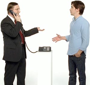 "E' certamente un errore di stampa" dice PC al telefono della redazione di PC World e se non vogliono credere a lui crederanno a Mac… che però non vuole dire bugie. Infatti è sempre PC che modifica la voce e si spaccia per Mac confermando il falso nel tentativo che il giornale cambi idea.