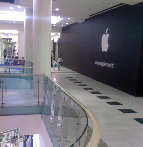 Proprio a fine di settimana scorsa anche le coperture nere dei lavori al centro commerciale Oriocenter sono state “aggiornate” con il logo bianco di Apple e l’indirizzo del sito italiano. Più o meno una settimana dopo quello che era già successo al Shopville Le Gru della periferia orientale di Torino.