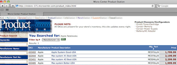 Il rivenditore statunitense Micro Center avrebbe inavvertitamente anticipato il nuovo listino dei MacBook Pro. Lo segnala un utente di reddit con questa schermata inviata a Mac Rumors.