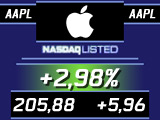 Il prezzo massimo dei 208,71 dollari toccati il 21 ottobre scorso per una AAPL non è stato sfiorato perché il range odierno è stato da poco meno di 203 a 206 dollari.