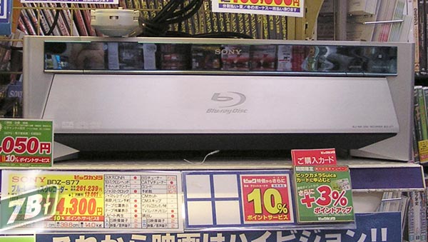 Quanto ai drive ecco due modelli Blu-ray: (gli unici in questo grande punto vendita di Tokio): il bello e mastodontico Sony BDZ-S77, comprensivo di tasse costa 274.300 yen (1.909 euro) ma per tutti gli stranieri 261.239 yen (1.818 euro).
