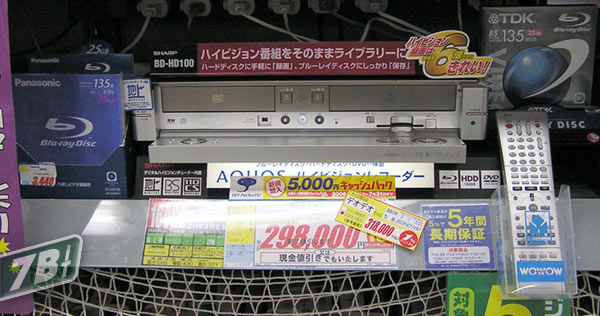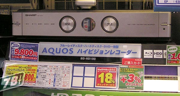 Sharp propone l'Aquos BD-HD100 comprensivo di HDD (disco interno da 160 GB) e secondo drive per DVD a 297.800 yen (2.072 euro) o 283.620 yen tax free (1.974 euro).