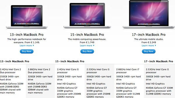 Tutti e 3 i modelli di MacBook Pro cambiano. Solo il laptop meno potente mantiene il prezzo di prima (pur cambiando molte caratteristiche, compresi il raddoppio della RAM a 4 GB) e quello più grande che riduce di 50 euro il prezzo.