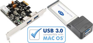 LaCie ha nel listino 2 schede con controller NEC che possono fornire un paio di porte USB 3 ai computer che ne sono privi: la PCI Express Card (1x) da 65 euro che si collega nei Mac Pro, la ExpressCard/34 da 75 euro dedicata al solo MacBook Pro da 17″ (o modelli più vecchi dotati dello slot omonimo). Il sito non aggiornato di LaCie continua ancora ad indicarle adatte solo a Windows e scrive “not compatible with Mac”.