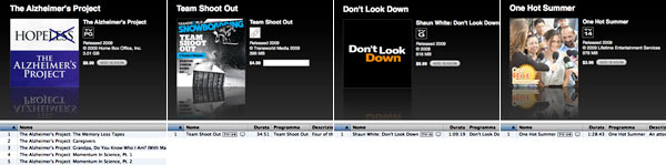 Infine tre film TV: “Team Shoot Out” costa 5 dollari ed è dedicato agli amanti dello snowboard, per 10 dollari si compera “Don’t look down” raccontando sfide di skate/snow board raccolte da ESPN, “One hot summer” di Lifetime costa 4 dollari per la storia di un avvocato a cui viene sconvolta la vita dopo il ritorno in città di un suo ex.