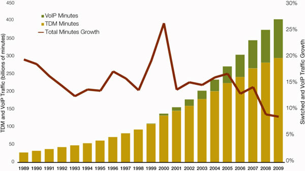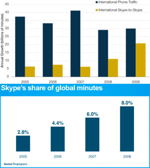 21 miliardi di minuti sono stati “consumati” tra utenti Skype durante il 2009 e l’azienda lussemburghese spiegava, fin dallo scorso dicembre, che le telefonate tradizionali diminuiscono la crescita a causa della recessione economica.