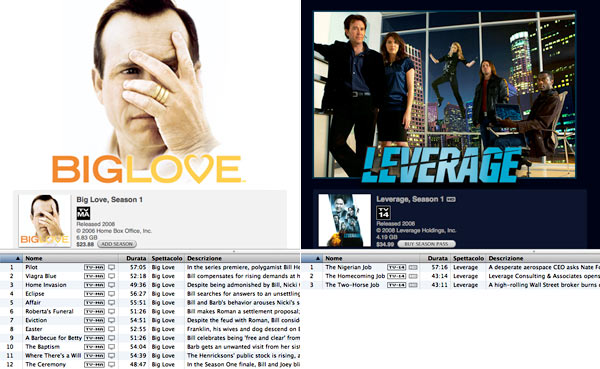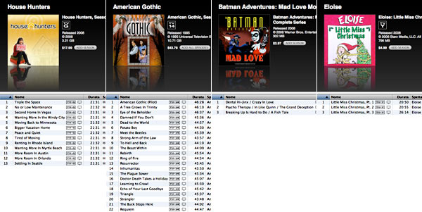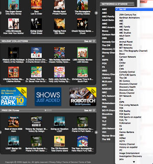 Erano ormai troppi 107 fornitori di contenuti televisivi per iTunes Store USA e questa settimana l'interfaccia della sezione è cambiata, eliminando la lista degli studio e dei canali. Ora compare solo una short list di 37 "nomi famosi" come ABC, CBS, NBC, Fox, HBO e WB ma il resto è in un menu a tendina.