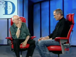 I “padroni di casa” Walt Mossberg e Kara Swisher, redattori tecnologici del WSJ, hanno sempre invitato Steve Jobs ma solo in 4 occasioni lui si è lasciato intervistare (2003, 2004, 2005 e 2007). L’ultima memorabile occasione è stata l’accoppiata con il suo amico-nemico Bill Gates e poi quella singola che verteva in parte sull’imminente debutto del primo iPhone. Se non basta il video riassuntivo dell’intervista doppia tra Gates e Jobs, su YouTube si trova quella completa (ecco le parti: 1, 2, 3, 4, 5, 6, 7, 8, 9, 10 e 11).