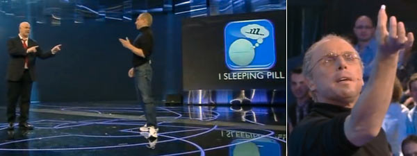 Quando arriva (nella solita divisa) lo “Steve Jobs di Cormano” dice al pubblico infeliche che ha la soluzione per tutti loro, ovvero un sonnifero in pillole denominato “iSleeping Pill” ma completamente wireless. Costerà 566 dollari oppure 4 se si ha la mutua sanitaria.