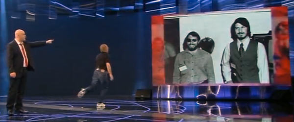 Crozza ricorda al pubblico (sbagliando un po’ le date) che Steve Jobs e Steve “Woz” Wozniak hanno inventato il personal computer 40 anni fa, ecco quindi che compare una foto in bianco e nero di quegli anni. Subito il CEO di Apple si inalbera e chiede di nascondere la faccia di Woz con Photoshop, ma non basta, anche la bionda svedese Mimmi Gunnarsson colpirà nell’animo Jobs dicendogli che Woz è suo marito.