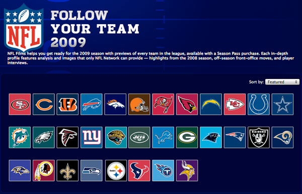 Conclude la rassegna settimanale, quella delle novità video sul negozio multimediale di Apple per gli USA, la proposta della "NFL" per gli appassionati del football americano. Si può acquistare (25 dollari) in anticipo tutta la stagione relativa alla propria squadra ed il primo file da scaricare è un riassunto dell'ultima annata, vinta al Super Bowl dagli Steelers.