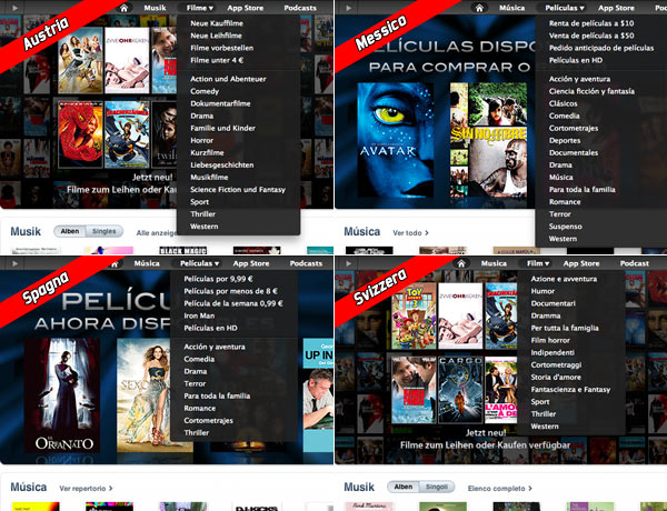 I prossimi 5 paesi che Apple potrà vantare come ulteriore sbarco dei film su iTunes sono: Austria, Messico, Spagna, Svizzera e naturalmente Italia.