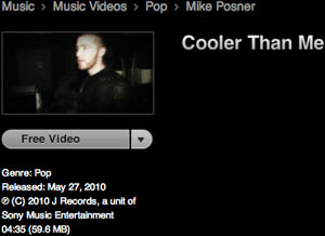 Invece da iTunes Store USA ecco il videoclip gratuito “Cooler than me” di Mike Posner e pure tutto il resto è disponibile sulla versione statunitense.