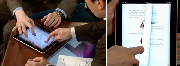 La funzione che più ha fatto esclamare “ohh” al pubblico dello studio è stato il modo con cui si “girano” le pagine dei libri elettronici contenuti nell’iPad.