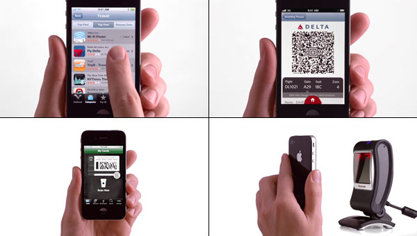 “App Store” (anche su YouTube) esalta le caratteristiche della “più grande selezione al mondo di applicazioni”, iniziando con il software di Delta Air Lines per creare sullo schermo dello smartphone il codice che sostituisce la carta d’imbarco del volo e proseguendo con il coupon pre-pagato di un caffè da Starbucks. Al termine non più il logo di AT&T ma anche nemmeno quello di Verizon Wireless, che probabilmente saranno aggiunti dagli operatori a seconda di chi pagherà la messa in onda (come accade nel resto del mondo con più carrier).