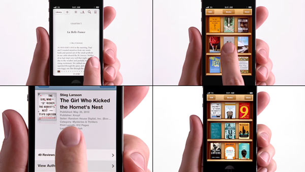 Premesso che in Italia ed altri paesi si può avere l’applicazione ma non il negozio virtuale di libri, ecco che nello spot “iBooks” (anche su YouTube) si ricordano le funzioni di questo software, ovvero la possibilità di leggere i “propri libri favoriti” nell’iPhone, ma anche acquistarne altri attraverso iBookstore, magari facendosi suggestionare dalla classifica dei best seller del New York Times.