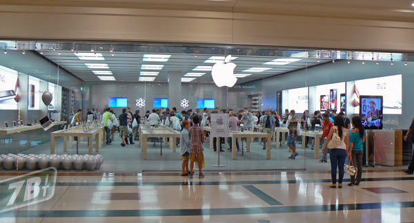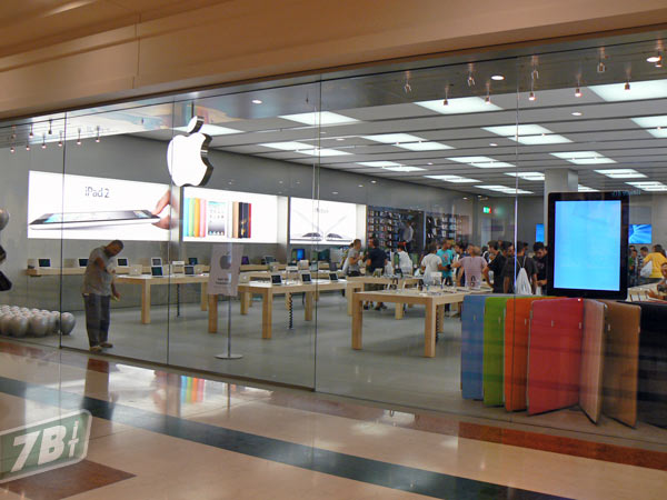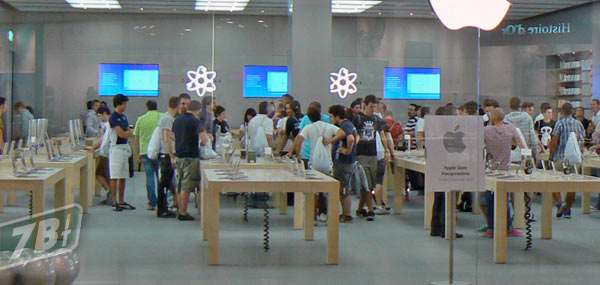 Come si può notare anche i nuovi arredamenti degli Apple Store sono presenti, con tanto di insegne luminose sui tavoli e quelle interattive con gli iPad.