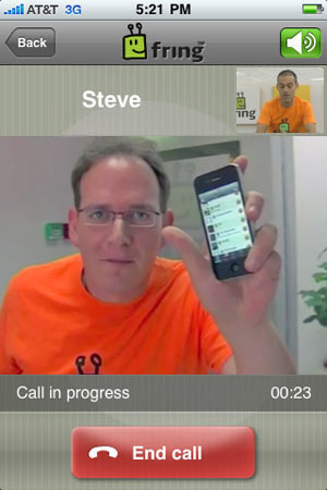 Il nuovo iPhone 4 dotato di doppia camera fronte/retro permette di effettuare videochiamate FaceTime su rete Wi-Fi, ma Fring ha abilitato la videochiamata Skype su qualunque rete disponibile.