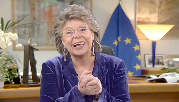 Il commissario delle telecomunicazioni nell'UE ha inaugurato oggi la sua settimanale video lettera che spedirà ai cittadini europei dal sito dell'Unione Europea.