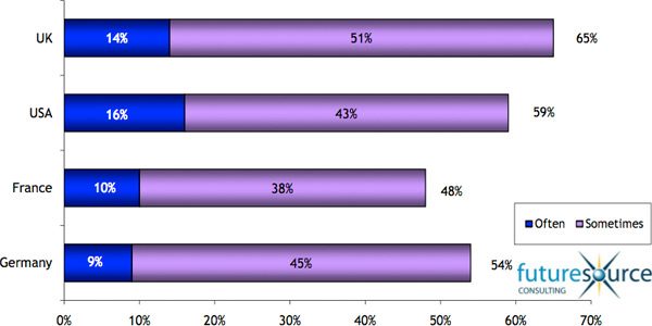 Futuresource Consulting ha intervistato 2.539 utenti di Internet in Francia, Germania, Gran Bretagna e Stati Uniti ed ha scoperto che è piuttosto diffusa la pratica di scaricare video senza possedere i diritti per farlo.