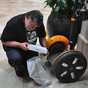 Tra gli immancabili clienti di un nuovo prodotto di Apple c’è sempre il co-fondatore Steve Wozniak, che raramente abbandona il suo Segway. Jobs a Palo Alto ed Ive a San Francisco.