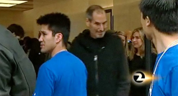 L’altro fondatore di Apple, Steve Jobs, era in visita a Palo Alto assieme a moglia e figlia nel negozio su University avenue, a breve distanza da casa loro. Lo testimonia un telegiornale della Valley.